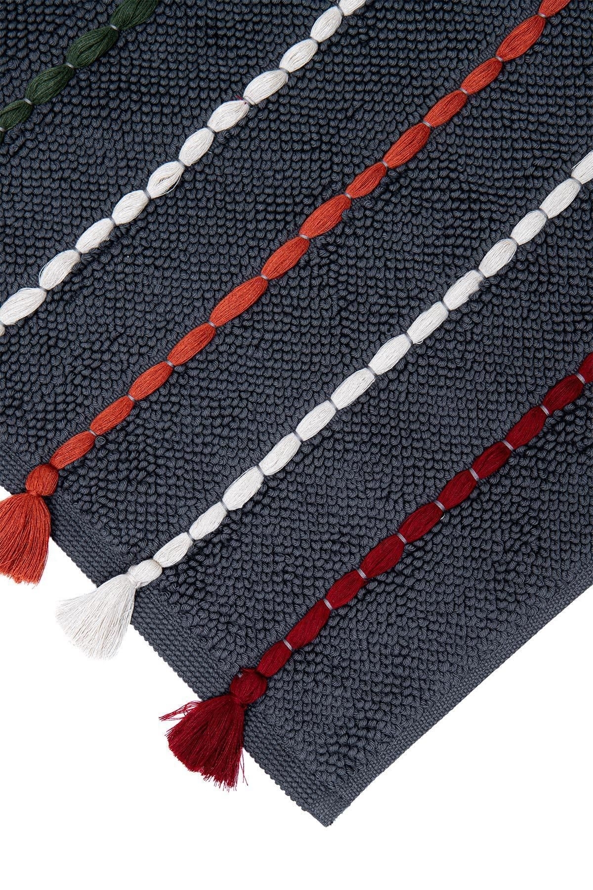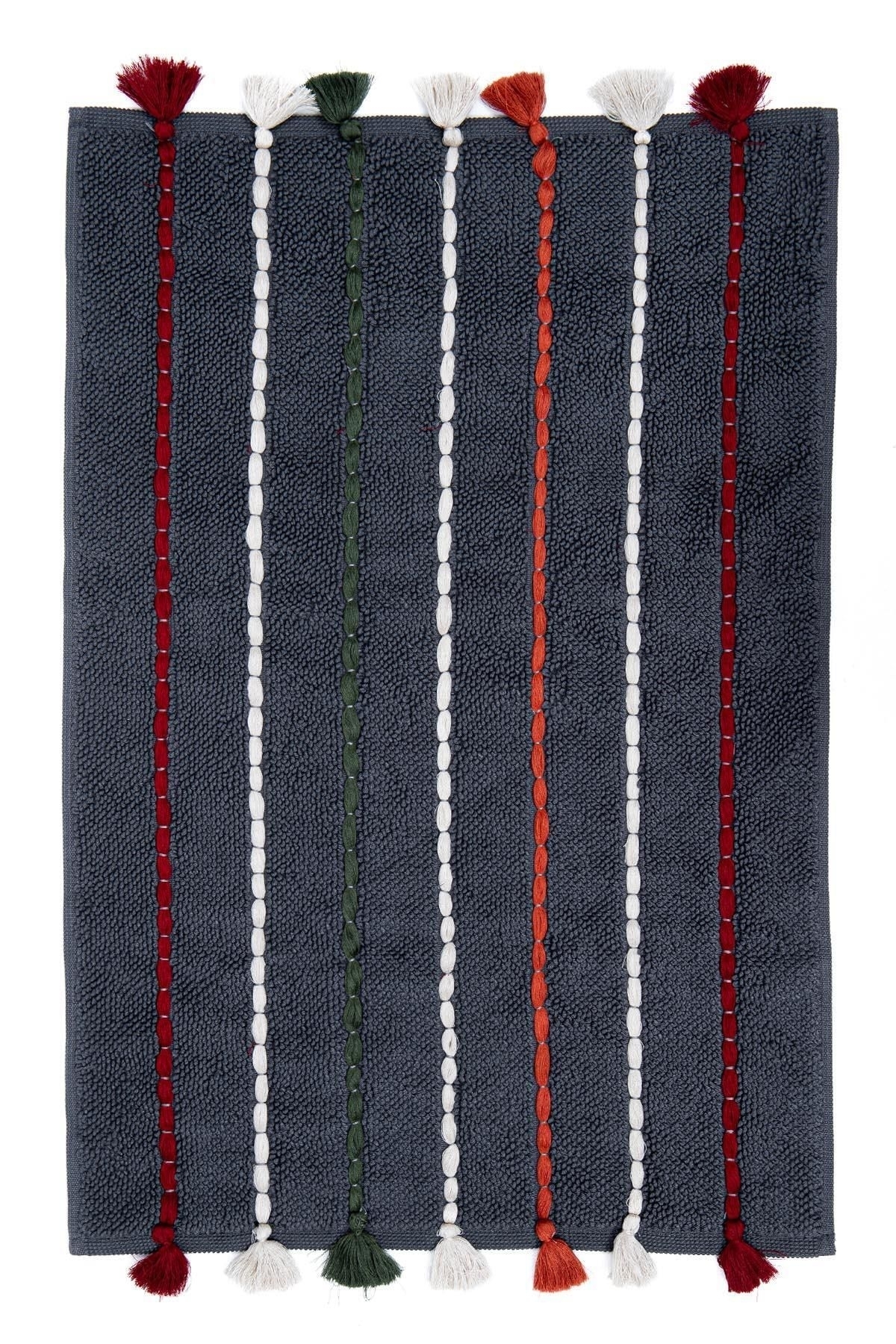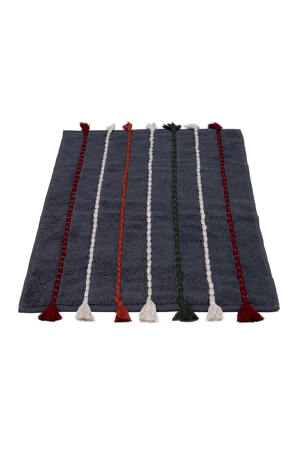 Katari Banyo Paspası %100 Pamuk El Nakışlı Antrasit 50x80 Cm