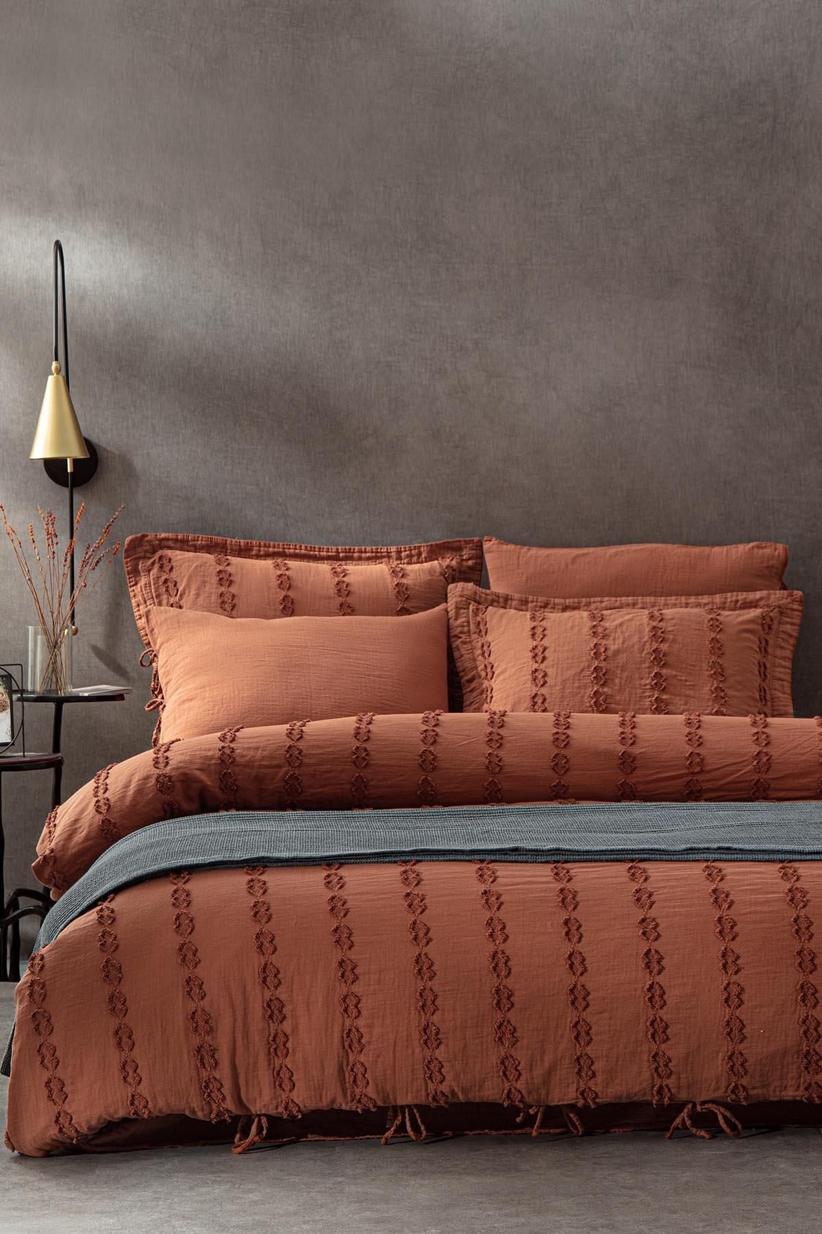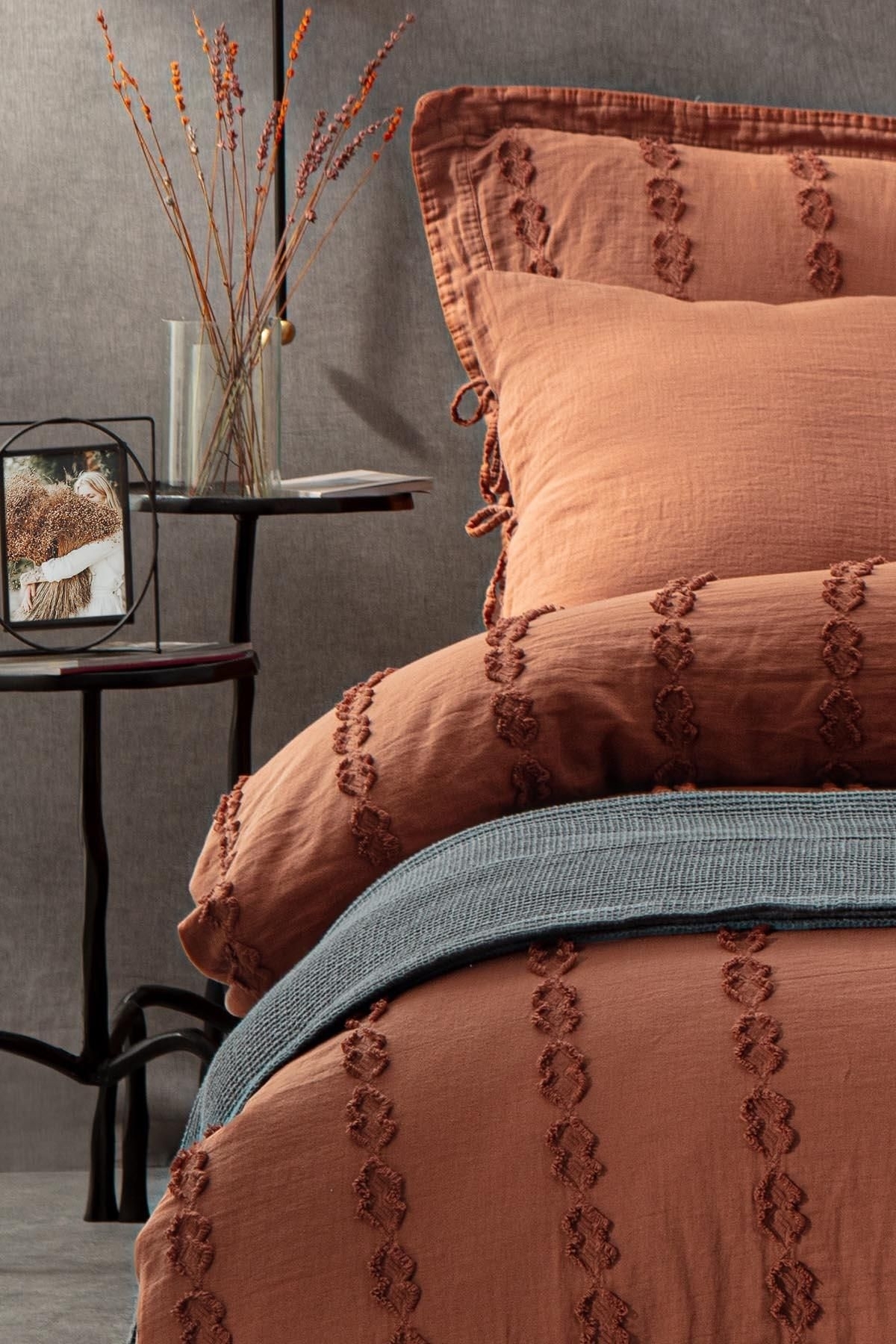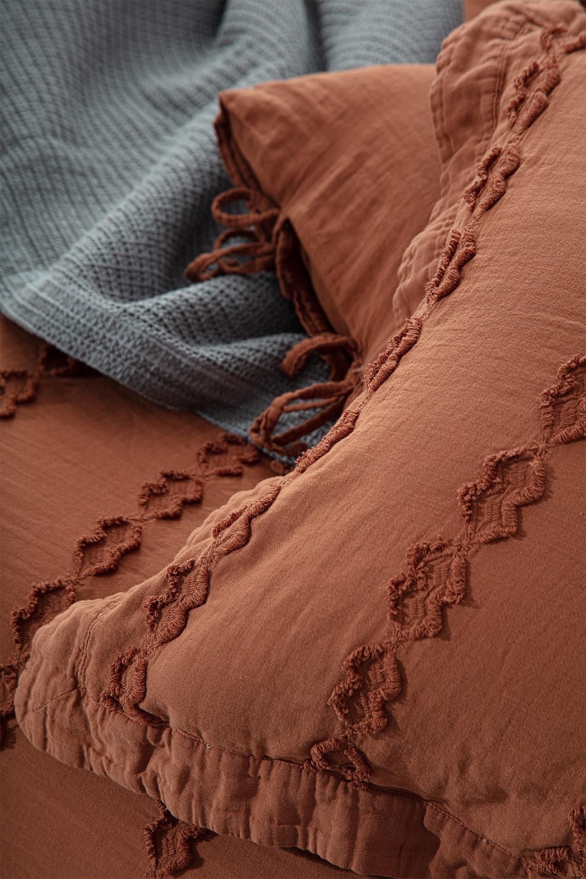 Sima Battal Boy Nevresim Takımı %100 Organik Pamuk Müslin Brodeli Terra 240x220 Cm
