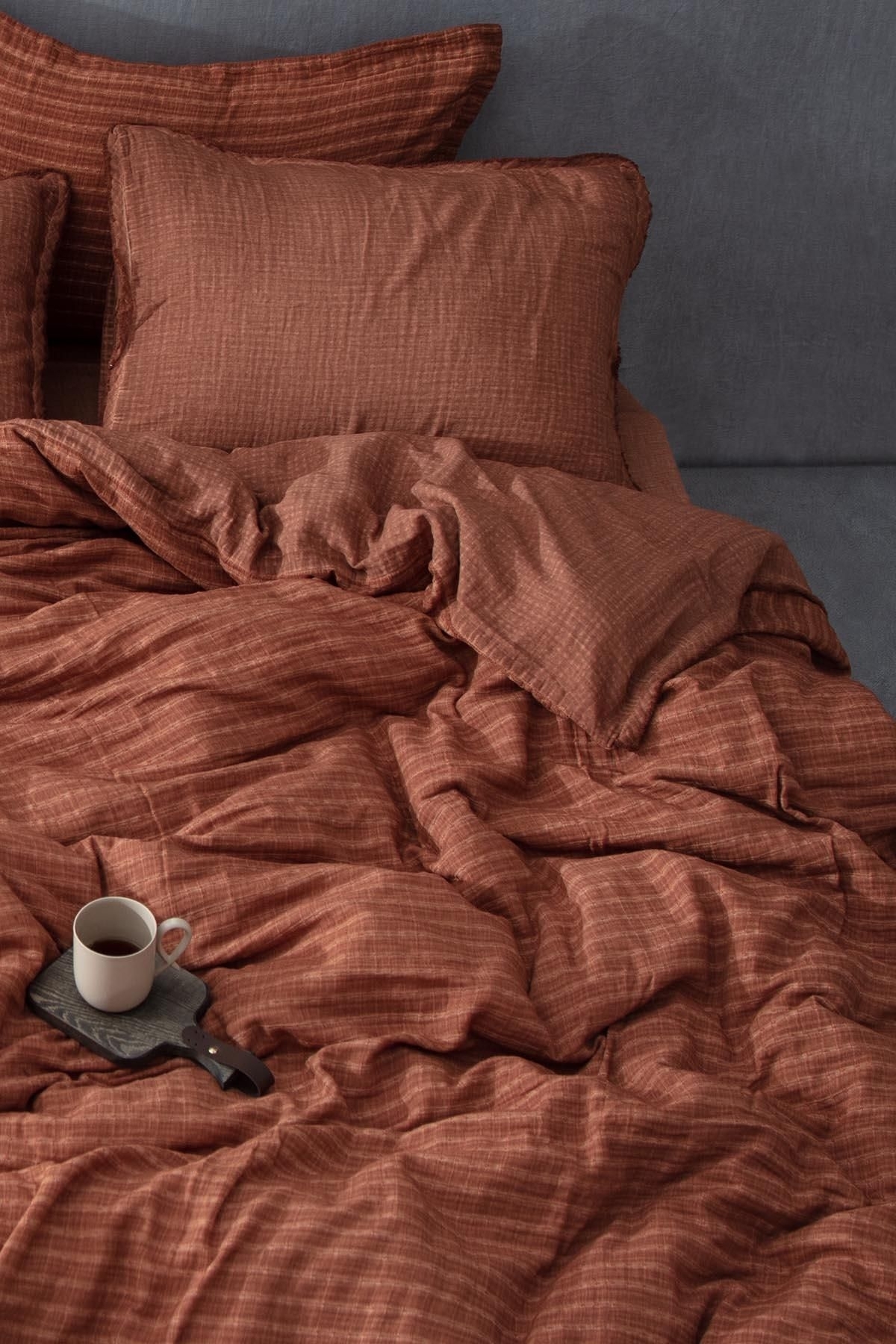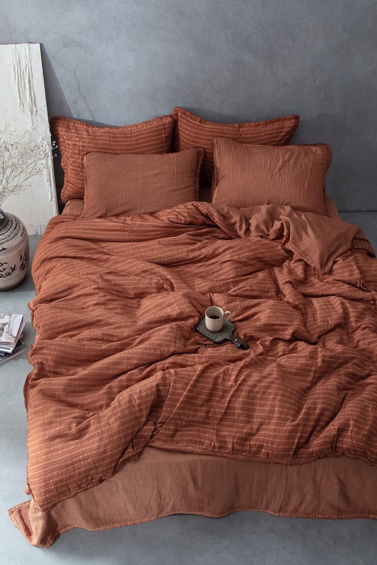 Tara Battal Boy Nevresim Takımı %100 Organik Pamuk Müslin Taba 240x220 Cm