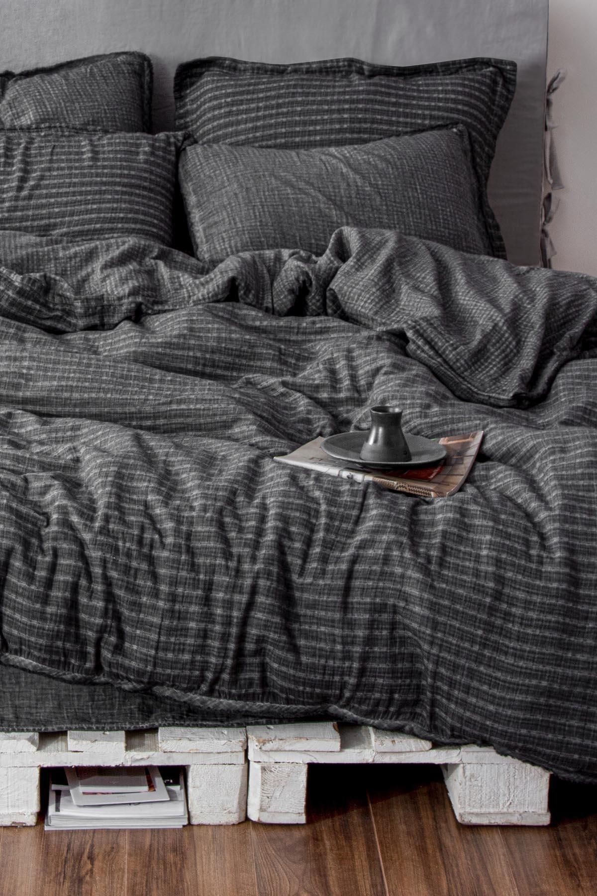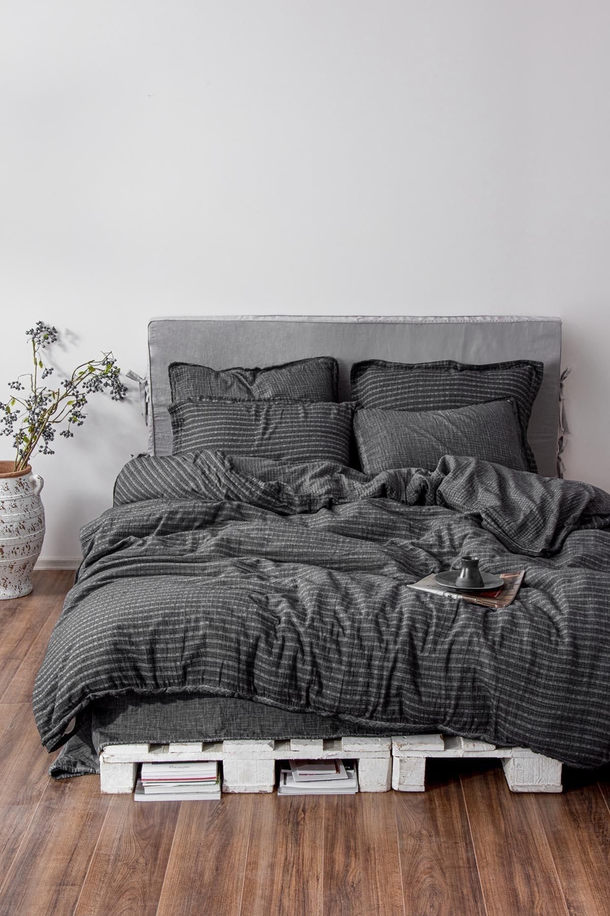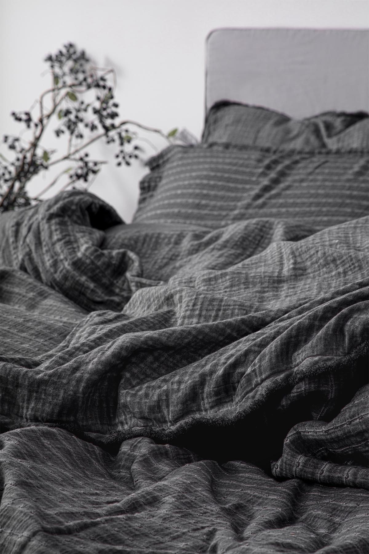 Tara Çift Kişilik Nevresim Takımı %100 Organik Pamuk Müslin Antrasit 200x220 Cm