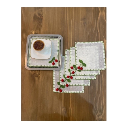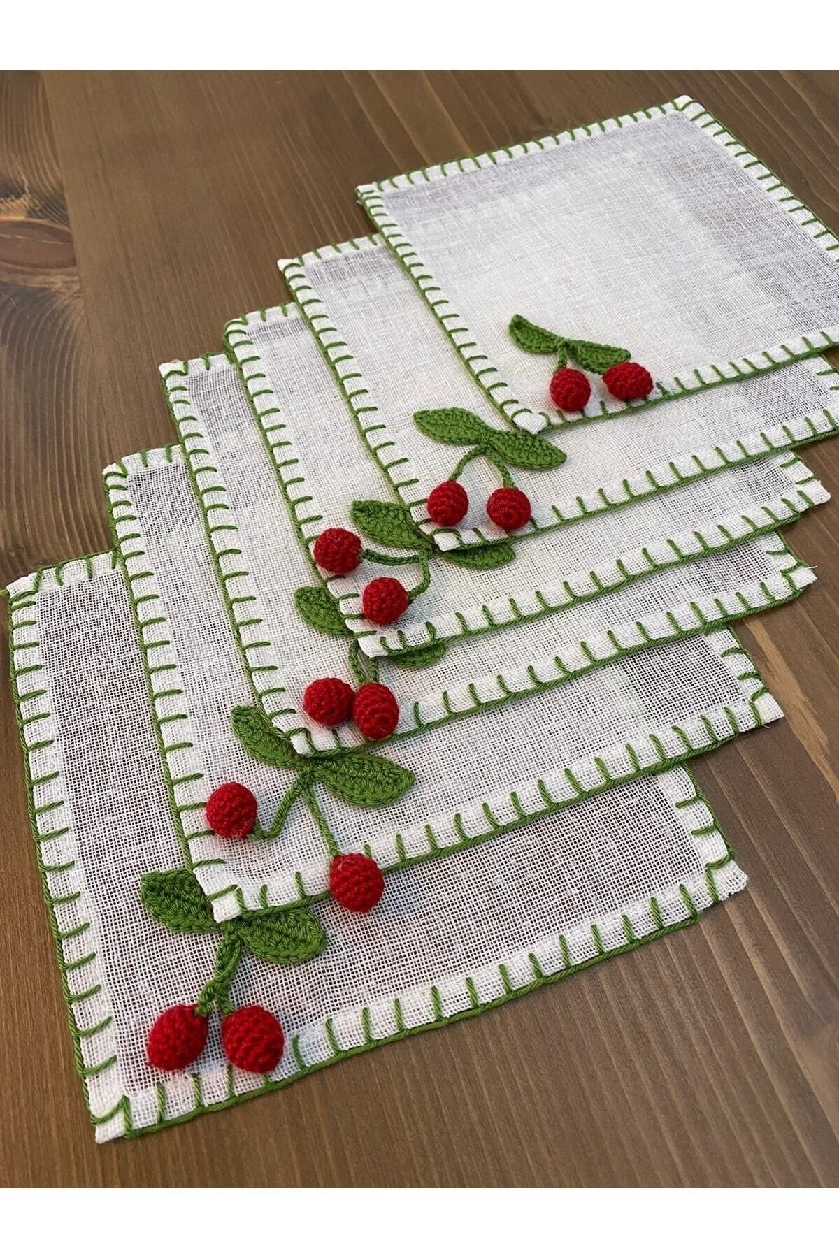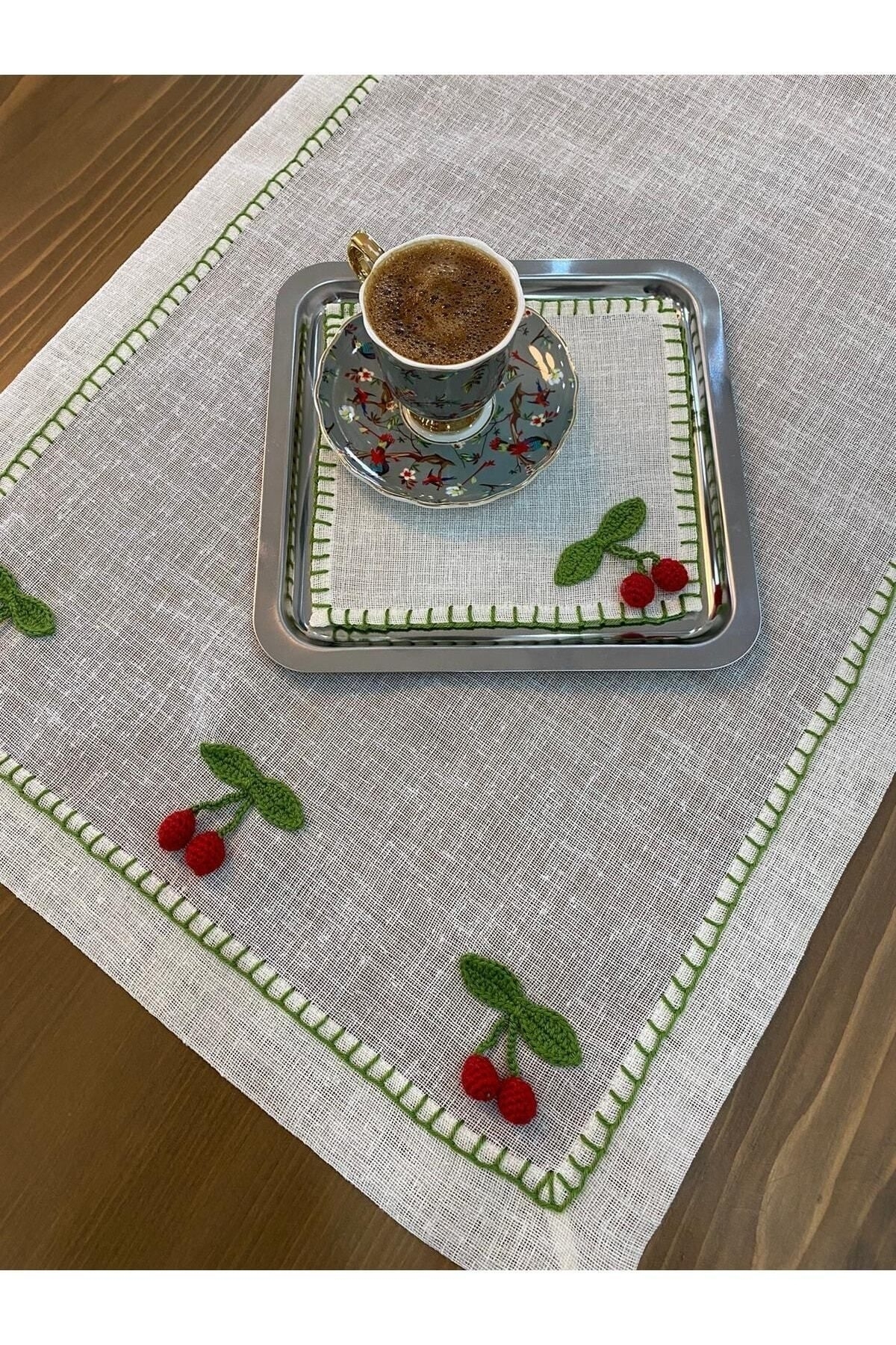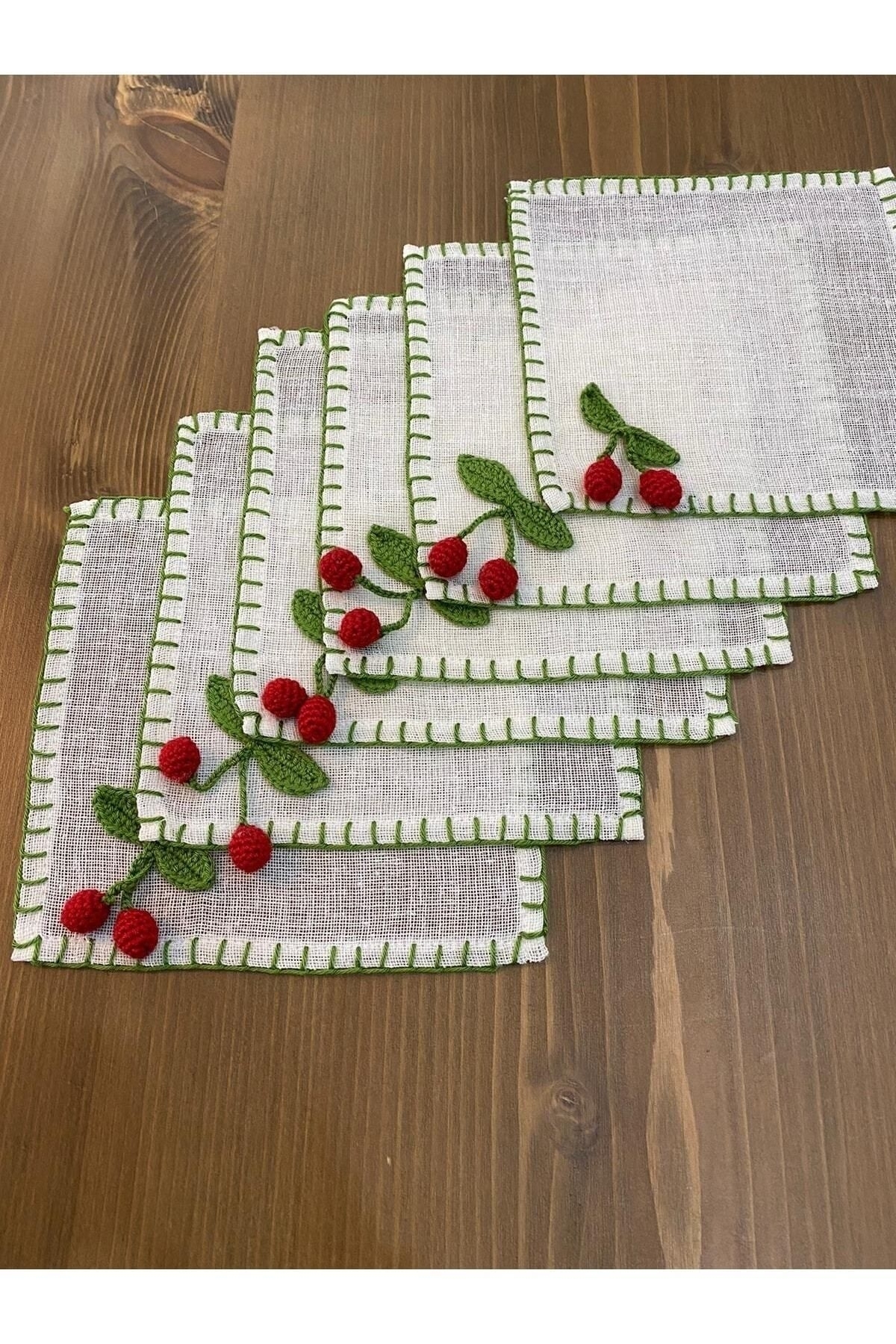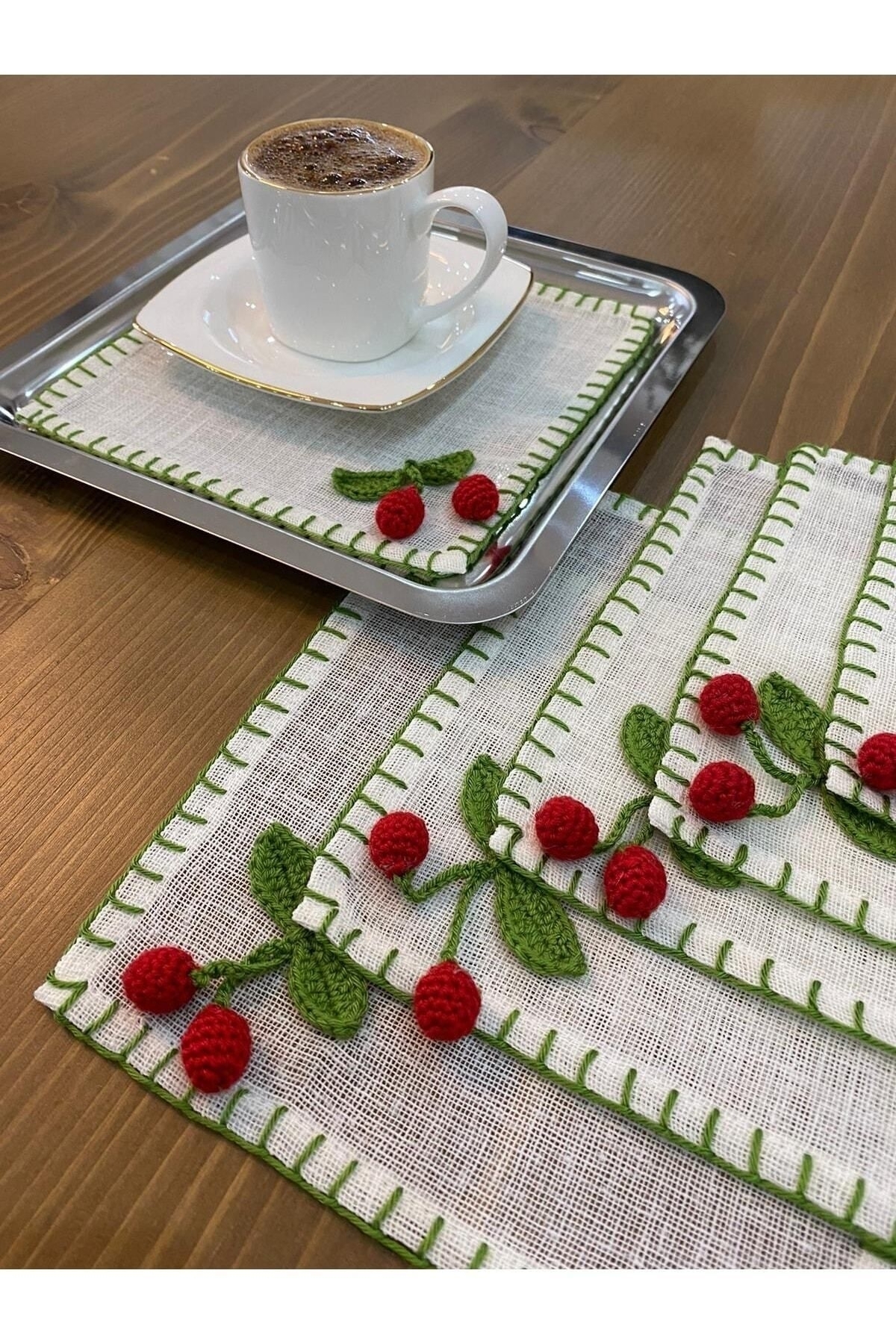 Kahve Sunum Peçetesi Kirazlı Örtü 6 Lı