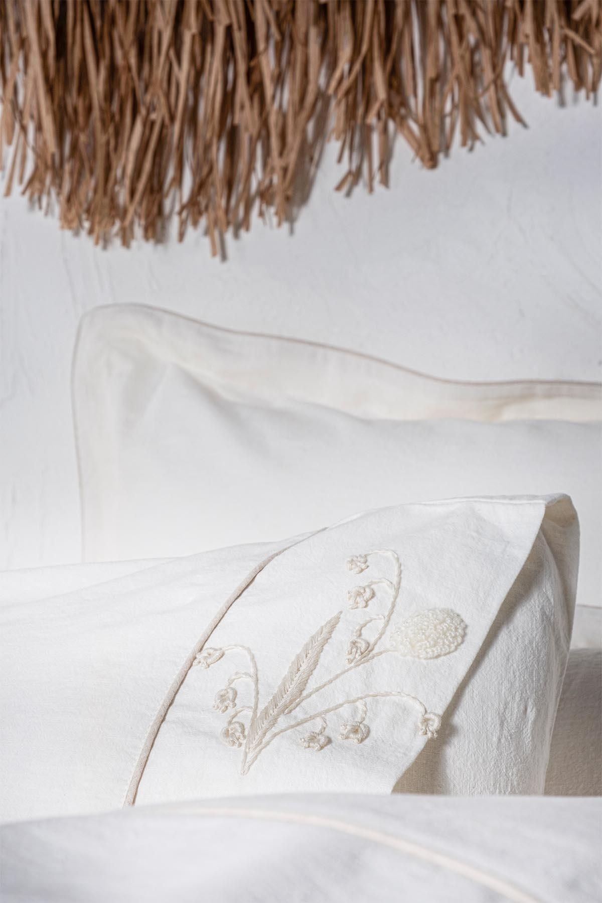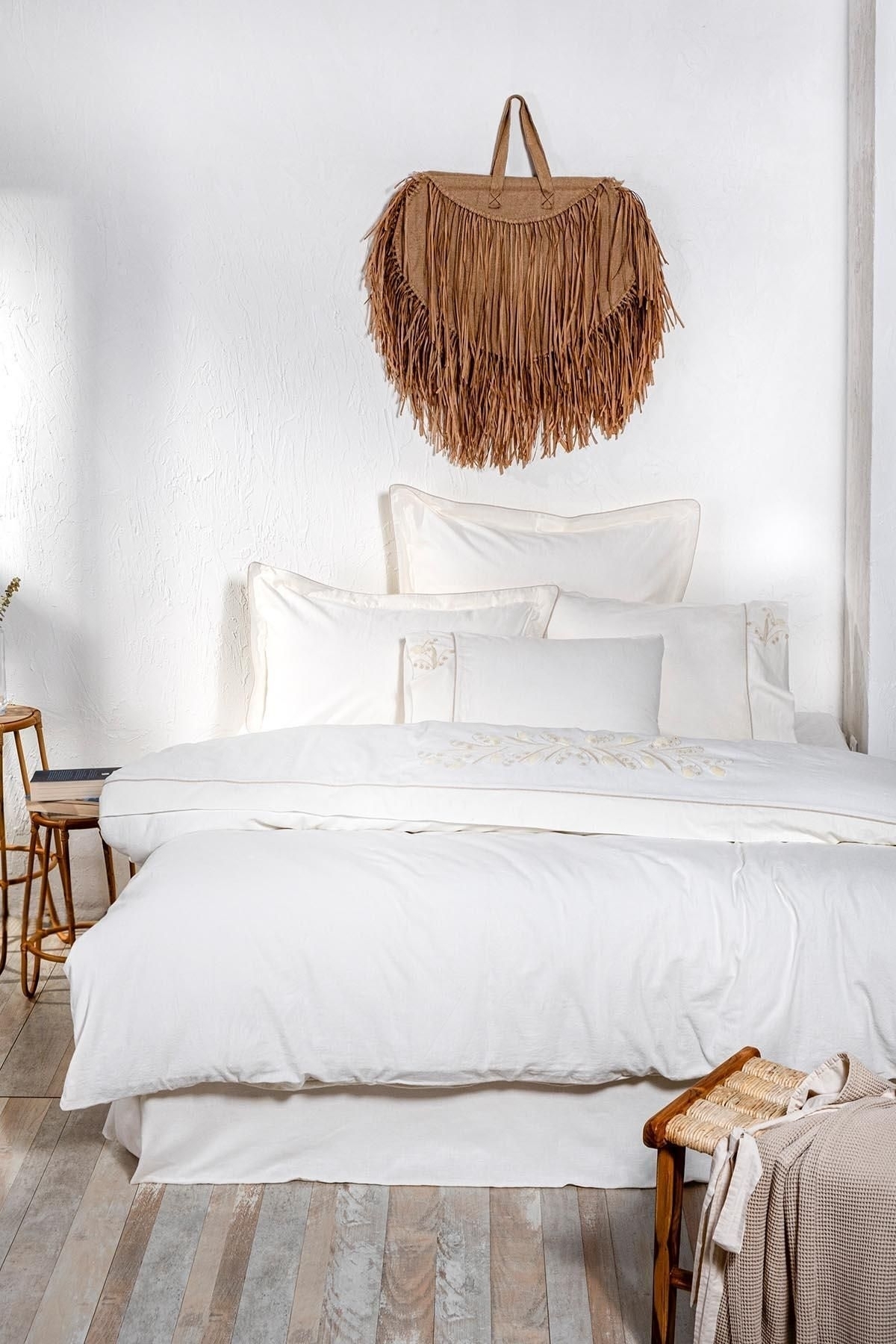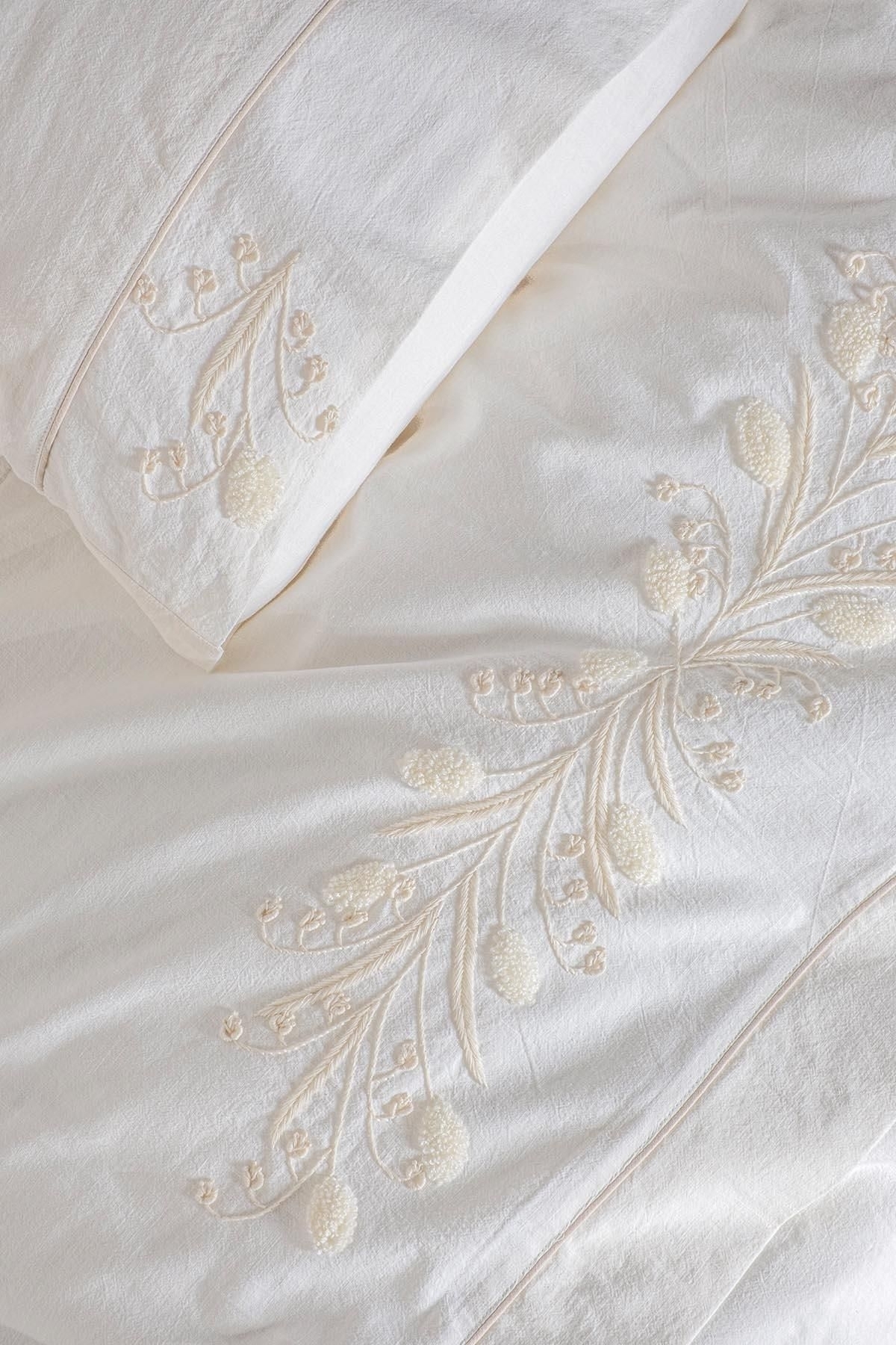 Lilya Battal Boy Nevresim Takımı %100 Organik Pamuk Keten El Nakışlı Krem 240x220 Cm