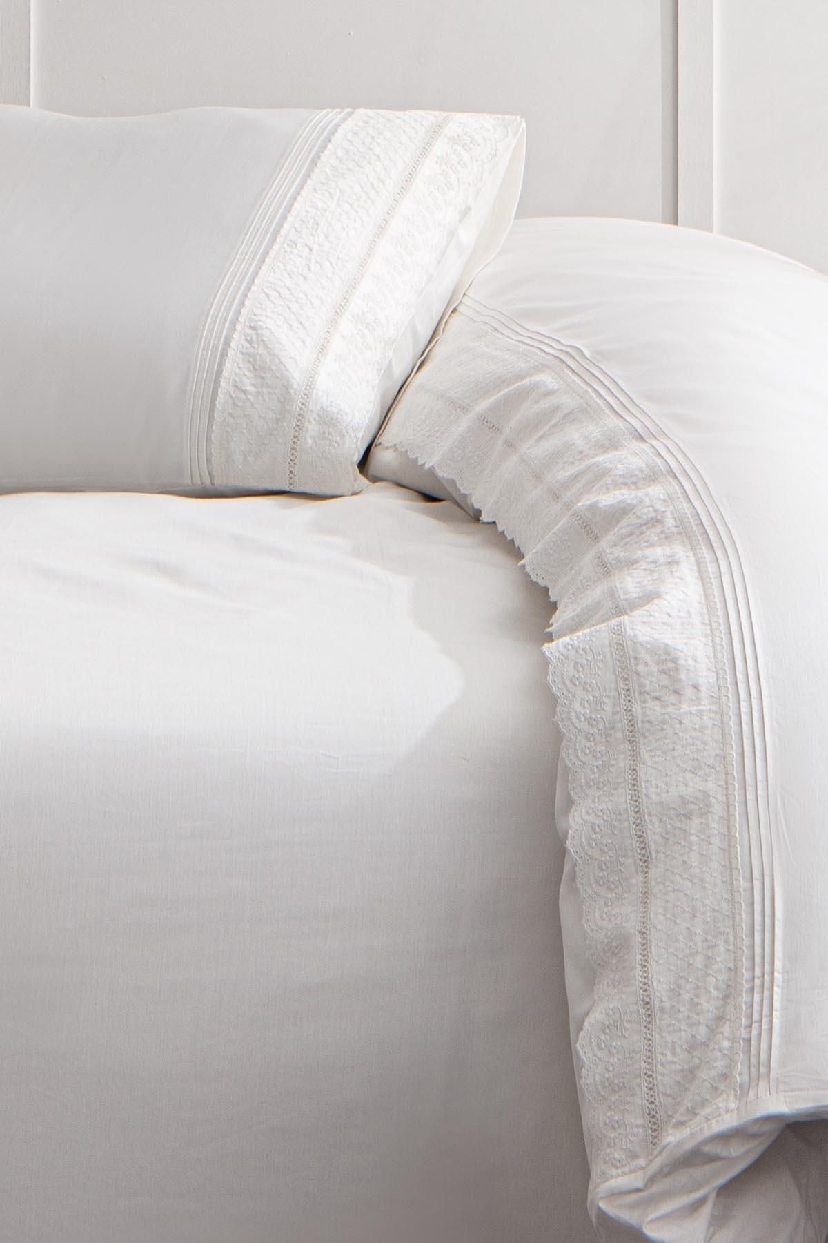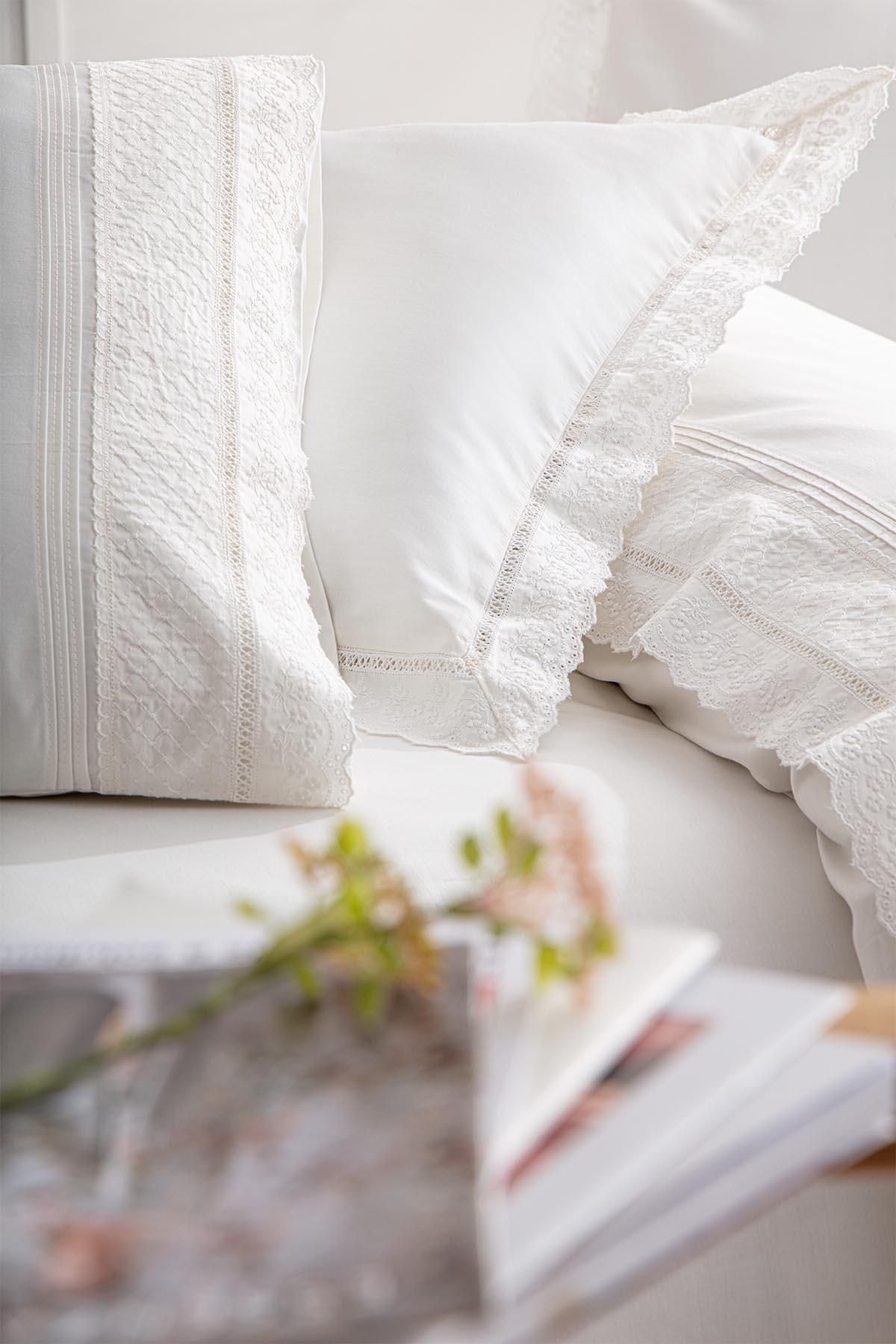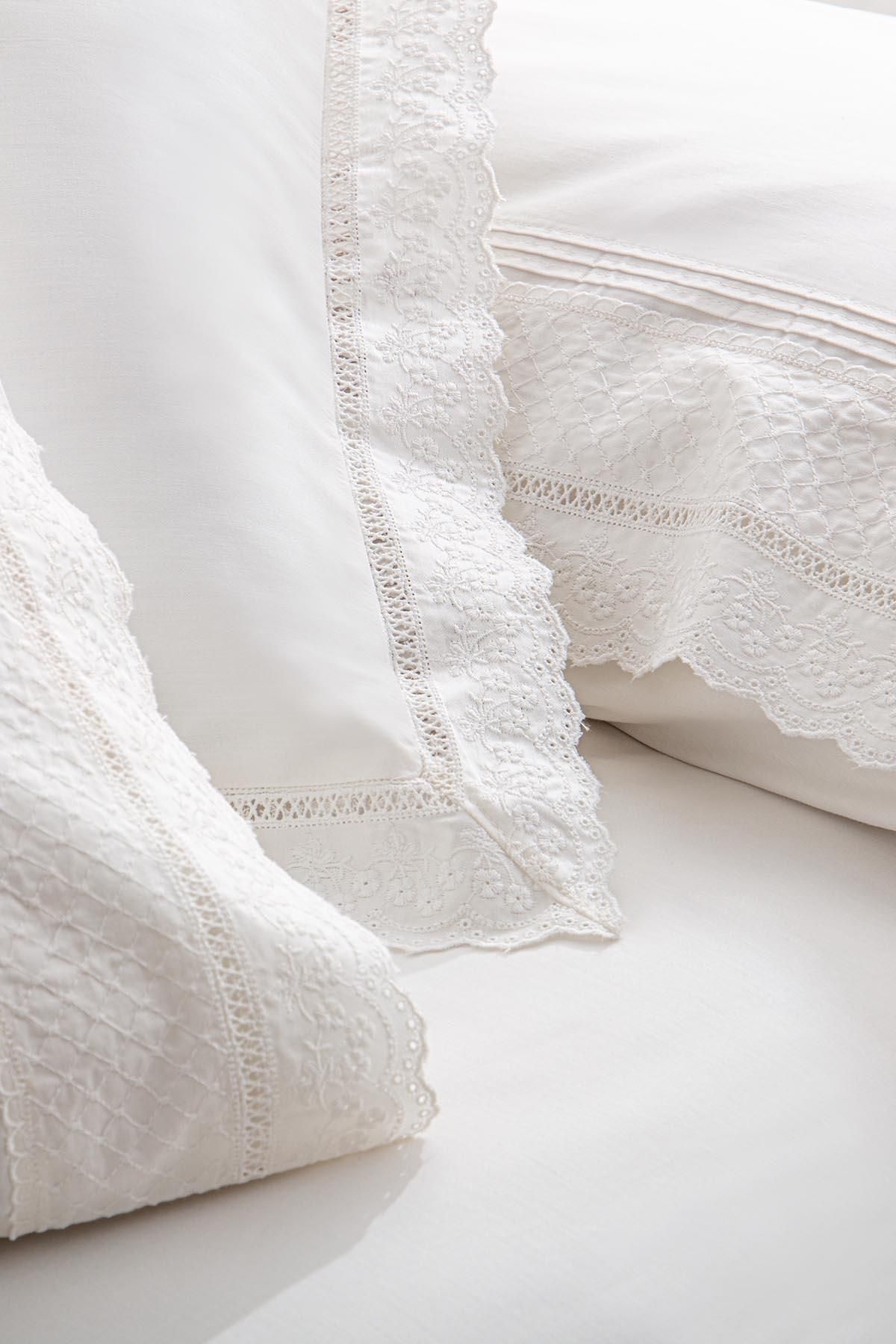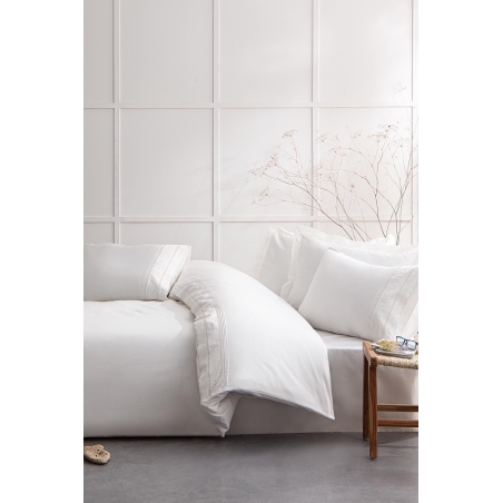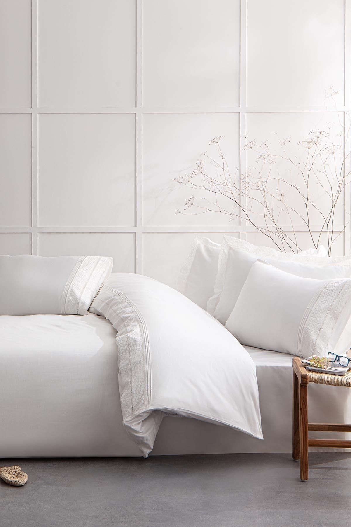 Liva Battal Boy Nevresim Takımı %100 Organik Pamuk Saten Brodeli Krem 240x220 Cm