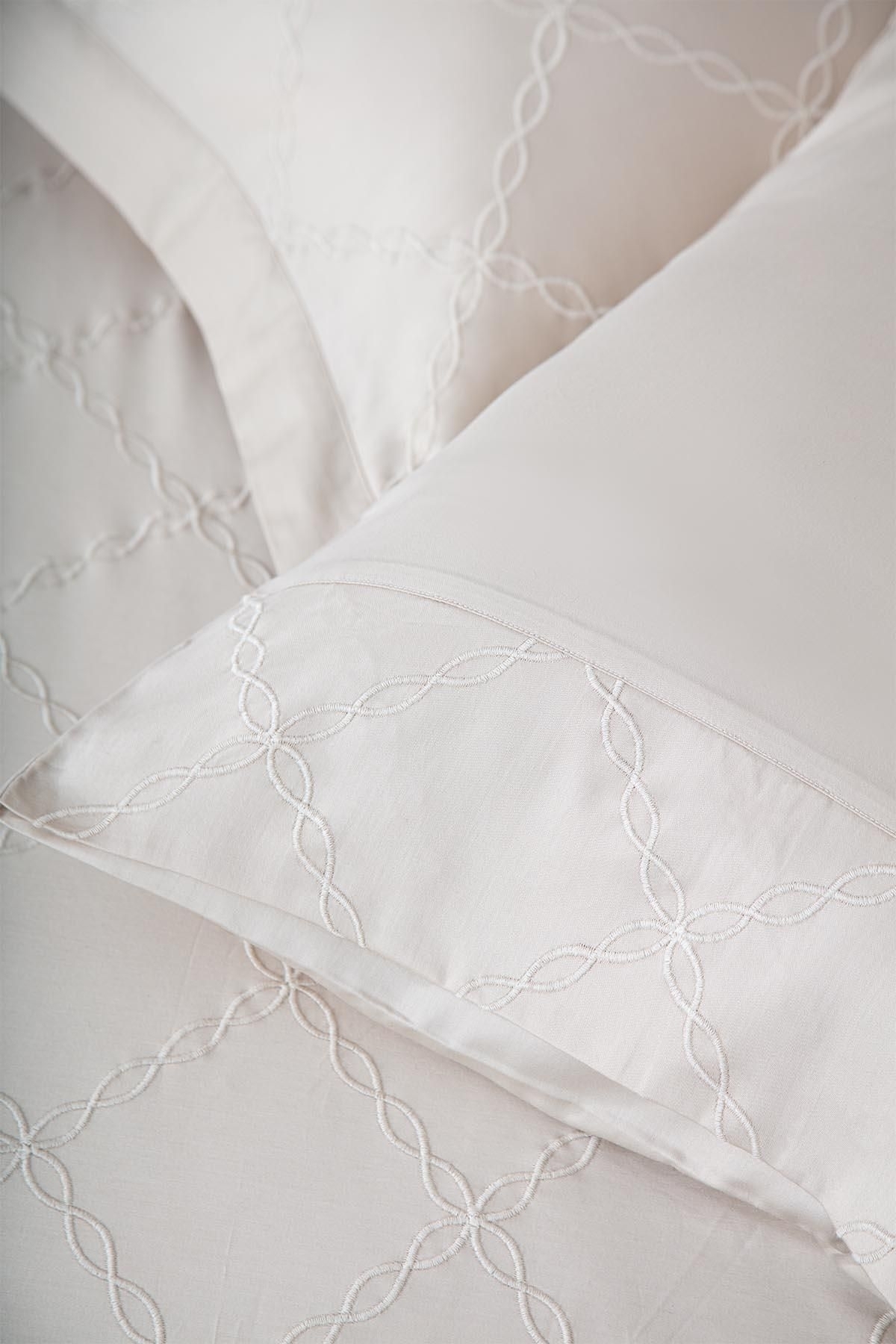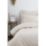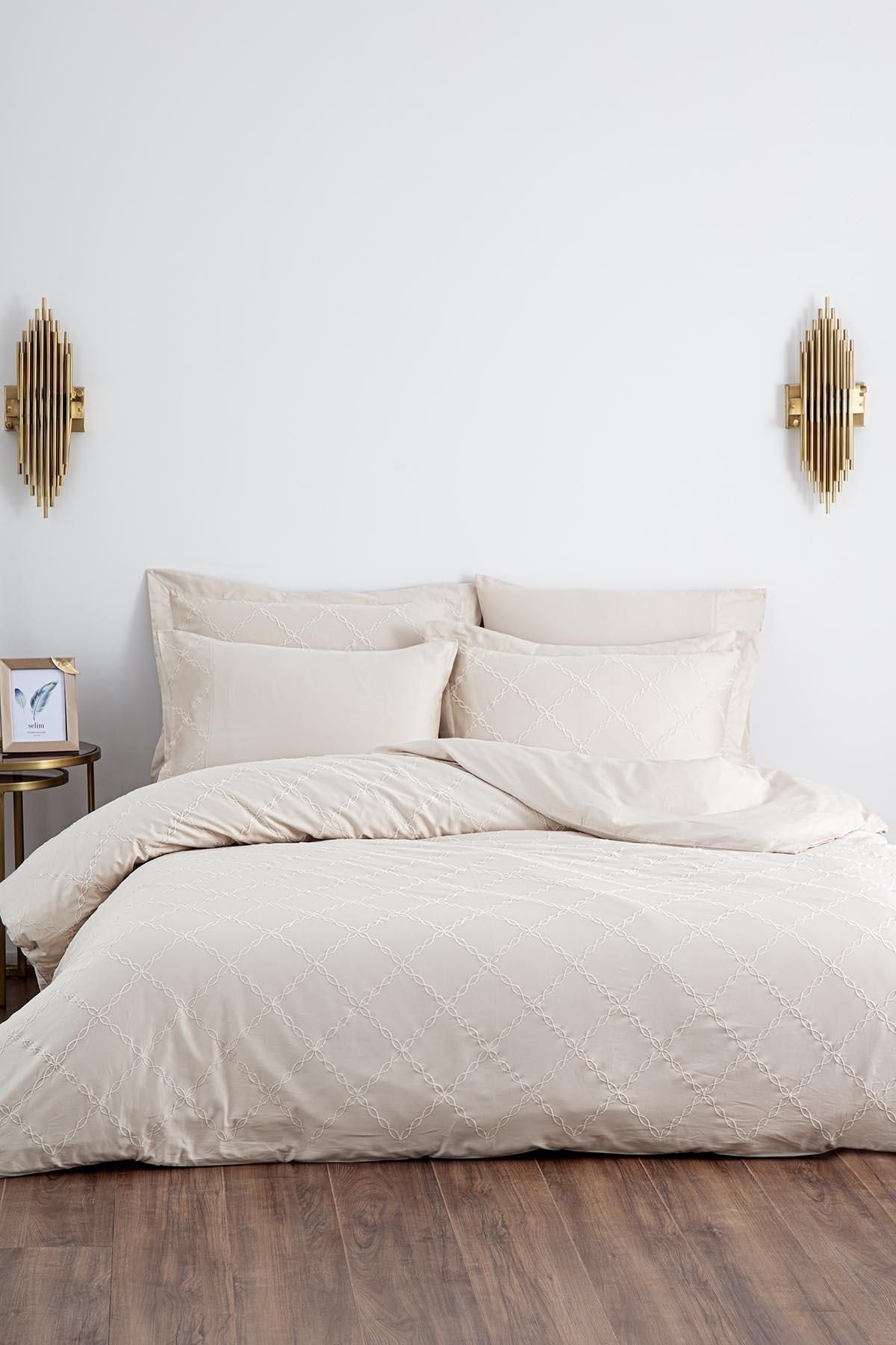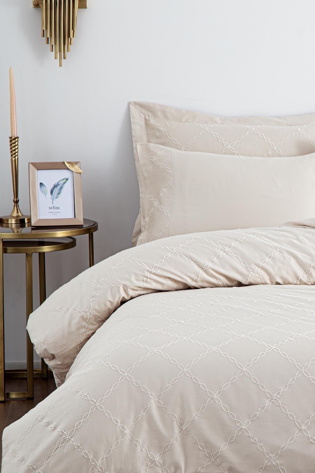Mahfer Battal Boy Nevresim Takımı %100 Organik Pamuk Saten Brodeli Bej 240x220 Cm